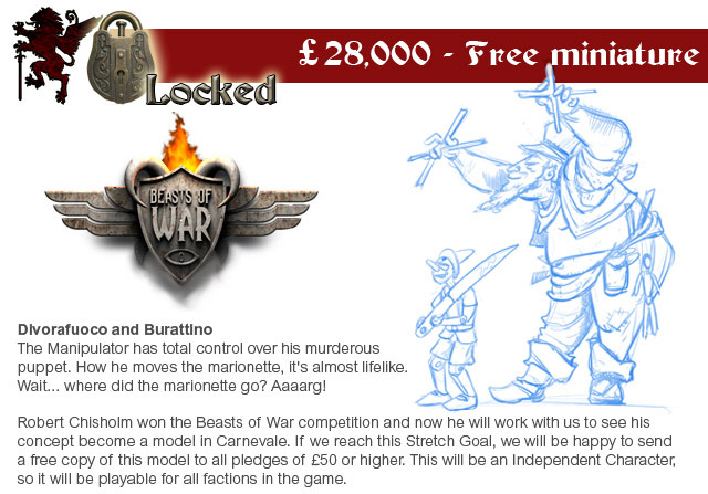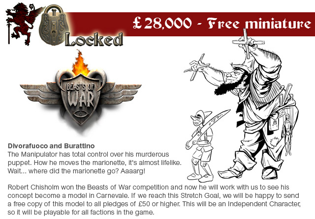 El primer Objetivo ambicioso de 15.000libras se ha conseguido mientras escribía este post. Se trata de una figura extra, es una figura de las independientes y que puede estar en cualquier facción. Aunque mirando la ilustración parece que sean dos figuras, ¿verdad?
