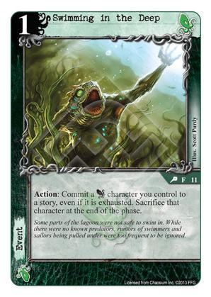 Una carta que yo creo que está mal diseñada. Esta asigna un personaje Miskatonic a una historia.. y no indica el "si puede" o "ha de estar activado". Así que se asigna incluso estando agotado.
